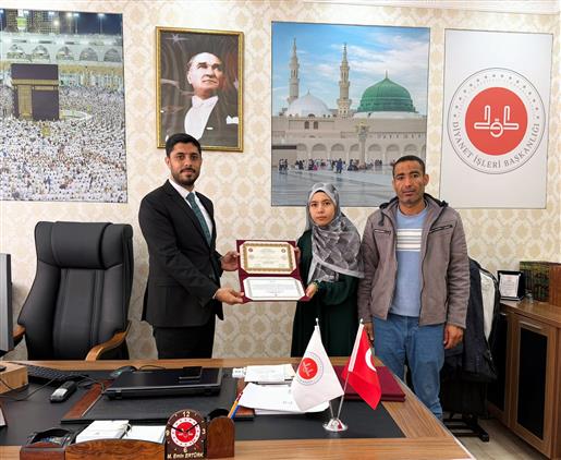 Ceylanpınar İlçe Müftülüğü, üç hafize daha kazandırmanın mutluluğunu yaşadı. Hafızlık eğitimlerini başarıyla tamamlayan öğrenciler için düzenlenen programda, İlçe Müftüsü Mehmet Emin Ertürk tarafından hafızlık belgeleri takdim edildi.