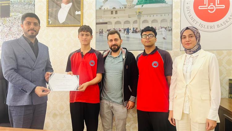 Müftü Ertürk, ziyarete eşlik eden öğrencilere Başkanlığımızın hediyelerini takdim etti.