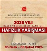 📖 2026 YILI HALKA YÖNELİK GENİŞ KATILIMLI HAFIZLIK YARIŞMALARI (HAFIZ KAL) 12.01.2026 📝 YARIŞMAYA KATILIM ŞARTLARI VE MÜRACAAT Detay