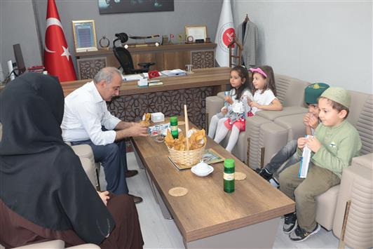 Reyyan Kur’an Kursu 4-6 yaş grubu öğrencileri, Camiler ve Din Görevlileri Haftası münasebetiyle İlçe Müftümüz Sn. Sacit Emiri’yi makamında ziyaret ederek haftasını kutladılar.