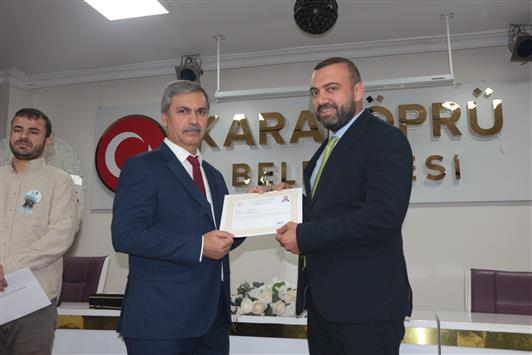 Karaköprü ilçe Müftülüğümüze bağlı Kuran Kurslarımızda Hafızlık Eğitimini tamamlayan 49 öğrencilere hafızlık belgeleri İlçe Müftümüz Sn. Sacit EMİRİ tarafından Hacı Mehmet Demircioğlu Camisinde düzenlenen törenle öğrencilere verildi.