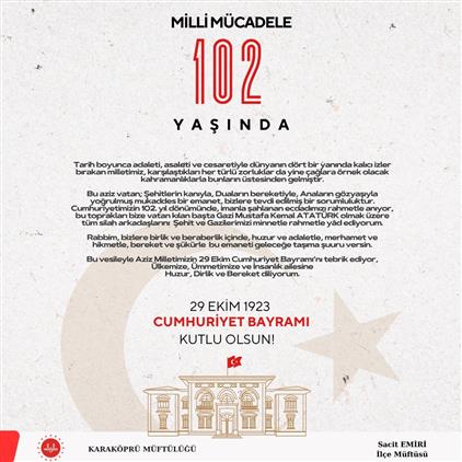 Cumhuriyetimizin 102. yıl dönümünde, imanla şahlanan ecdadımızı rahmetle anıyor,