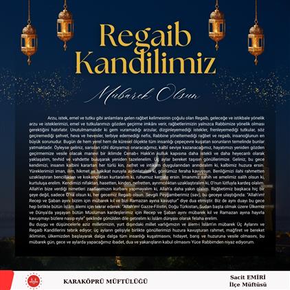 Arzu, istek, emel ve tutku gibi anlamlara gelen rağbet kelimesinin çoğulu olan Regaib, geleceğe ve istikbale yönelik arzu ve isteklerimizi, emel ve tutkularımızı gözden geçirme imkânı verir, rağbetlerimizin yalnızca Rabbimize yönelik olması gerektiğini hatırlatır. Unutulmamalıdır ki gem vuramadığı arzular, dizginleyemediği istekler, frenleyemediği tutkular, söz geçiremediği şehvet, heva ve hevesler, terbiye edemediği nefis, Rabbine yöneltemediği rağbet ve regaib, insanoğlunun en büyük sorunudur. Bugün de hem yerel hem de küresel ölçekte tüm insanlığı çepeçevre kuşatan sorunların temelinde bunlar yatmaktadır. Öyleyse geliniz, sarsılan rûhî dünyamızı onaracağımız, kalbî seviye kazanacağımız, hayatımızı yeniden gözden geçirmemize vesile olacak manevi bir iklimde Cenab-ı Hakk'ın kulluk kapısına daha istekli ve daha heyecanlı olarak yaklaşalım, tevhid ve vahdette buluşarak yeniden tazelenelim. Üç aylar bereket taşısın gönüllerimize. Geliniz, bu gece kendimizi, insanın kalbini karartan her türlü kin, nefret ve intikam duygularından arındıralım ki, kalbimiz huzura ersin. Yüreklerimizi iman, ilim, hikmet ve hakikat nuruyla aydınlatalım ki, gönlümüz feraha kavuşsun. Benliğimizi ilahi rahmetten uzaklaştıran bencillikten ve kıskançlıktan kurtaralım ki, ruhumuz kemale ersin. İmanımız sahih ve amelimiz salih olsun ki, kurtuluşa erelim. Kendimizi nifaktan, hasetten, kinden, nefretten, ayrımcılıktan uzaklaştıralım ki, O’nun lütfuyla kardeş olalım. Allah’ın bize verdiği nimetleri zaaflarımızın kurbanı yapmayalım ki, Allah’a daha yakın olalım. Rağbetimiz başkaca hiç bir şeye değil, sadece O’na olsun ki, her gecemiz Regaib olsun. Sevgili Peygamberimiz (sav), bu geceye ulaştığında: “Allah’ım! Recep ve Şaban ayını bizim için mübarek kıl ve bizi Ramazan ayına kavuştur” diye dua etmiştir. Biz de aynı duayı bu gece hep birlikte bütün İslâm âlemi için tekrar ederek: “Allah’ım! Gazze-Filistin, Doğu Türkistan, Sudan başta olmak üzere Ülkemiz ve Dünya’da yaşayan bütün Müslüman kardeşlerimiz için Recep ve Şaban ayını mübarek kıl ve Ramazan ayına hayırla kavuşmayı bizlere nasip eyle” şeklinde gönülden dile getirelim ki İslâm dünyası olarak felaha erelim.