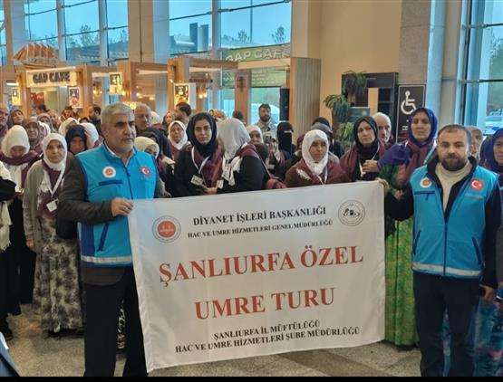 Diyanet İşleri Başkanlığı ile Şanlıurfa İl Müftülüğü iş birliğinde düzenlenen özel umre turuna katılan vatandaşlar, GAP Havalimanı’nda düzenlenen törenle dualar eşliğinde kutsal topraklara uğurlandı.
