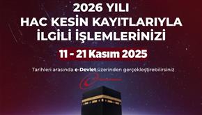 2026 Yılı Hac Kesin Kayıt İşlemleri Nasıl Yapılır? 14.11.2025 2026 yılı hac kesin işlemlerinizi, 11 Kasım 2025 Salı günü Saat 09.00'dan itibaren e-Devlet @ekapi üzerinden yapabilirsiniz. Detay